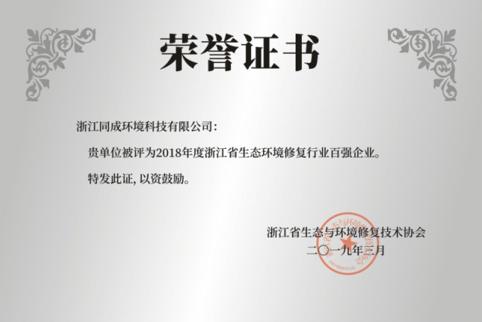 2018年度第一批浙江省生態環境修復產業企業信用AAA等級