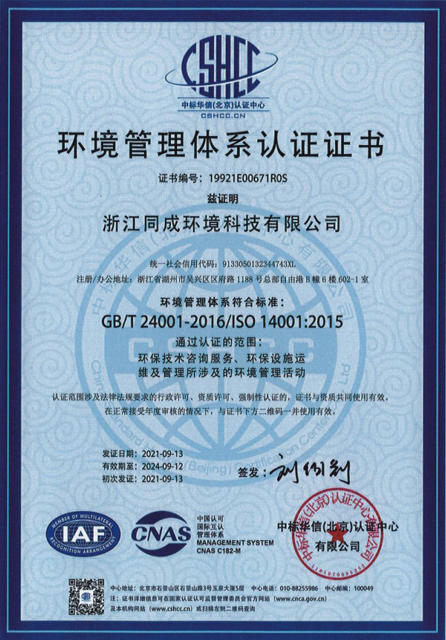公司成立于2014年,現位于湖州市吳興區樹莊路88號中小微企業智能產業園一期18幢,是一家集環境咨詢、環境監測、環境工程設計和總承包及運維服務、環保設備加工制造與技術研發、投資運營與一體的綜合性環境服務公司。公司已通過國家高新技術企業認定、國家級科技型中小企業認定和湖州市科技企業研究開發中心認定,擁有高中級工程師、國家注冊環評工程師、建造師、三廢處理高級工等一系列專業技術人才近百人,擁有環境影響評價、環境監理、清潔生產審核、工程設計及總承包、機電安裝、運營、檢測等全產業鏈的各級資質,擁有專業研發團隊并取得二十余項發明專利。